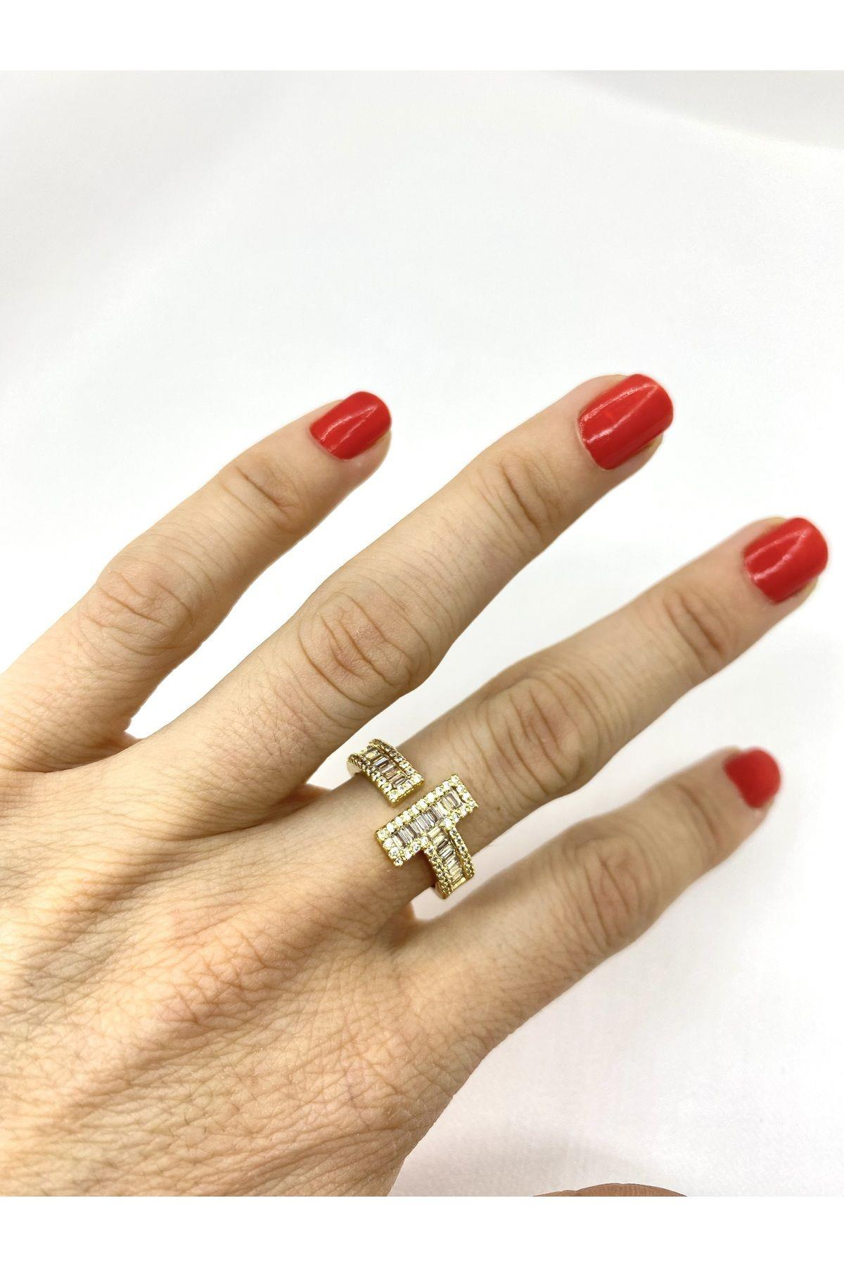Ayarlanabilir Gold Zirkon Taşlı Çelik Yüzük