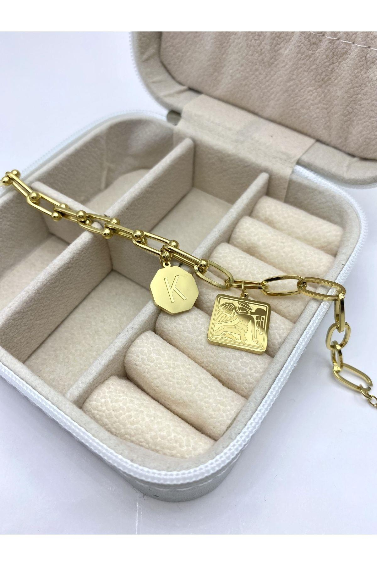 Çelik Bileklik Gold K Harfli