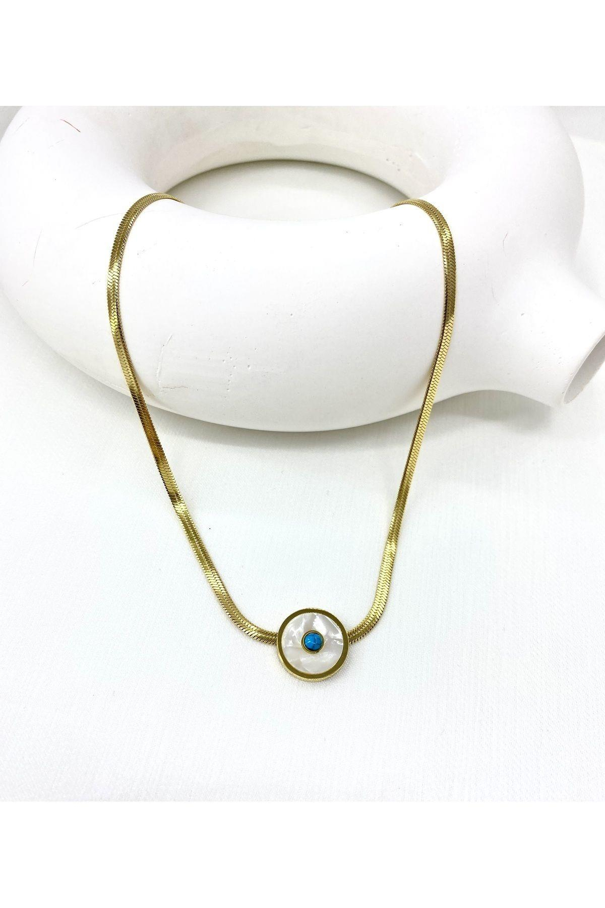 - Dayanıklı çelik materyal kullanılarak üretilmiş, uzun ömürlü bir aksesuar deneyimi sunar; - Altın kaplama detayları ile şıklığı ve zarafeti bir arada barındırır, her türlü kıyafetle uyum sağlar; - Kolay temizlenebilir yüzeyi ile pratik bakım imkanı sağlar; leke tutmaz ve parlaklığını uzun süre korur; - Modern tasarımı ile günlük kullanımın yanı sıra özel günlerde de tercih edilebilir, her ortamda dikkat çekici bir aksesuar oluşturur;
