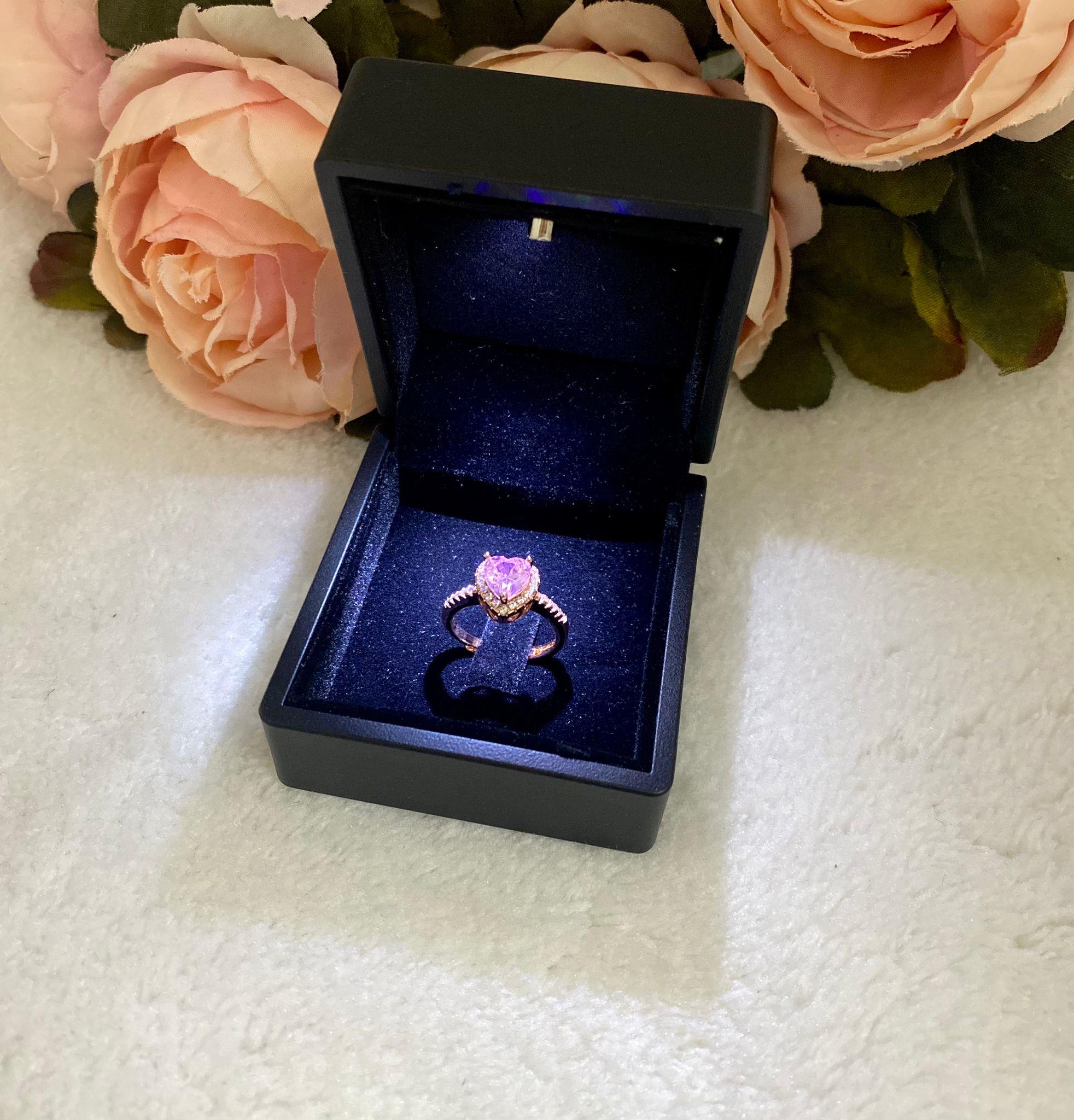 Siyah Işıklı Kutuda Ayarlanabilir Çelik Rose Yüzük Hediye Paketi