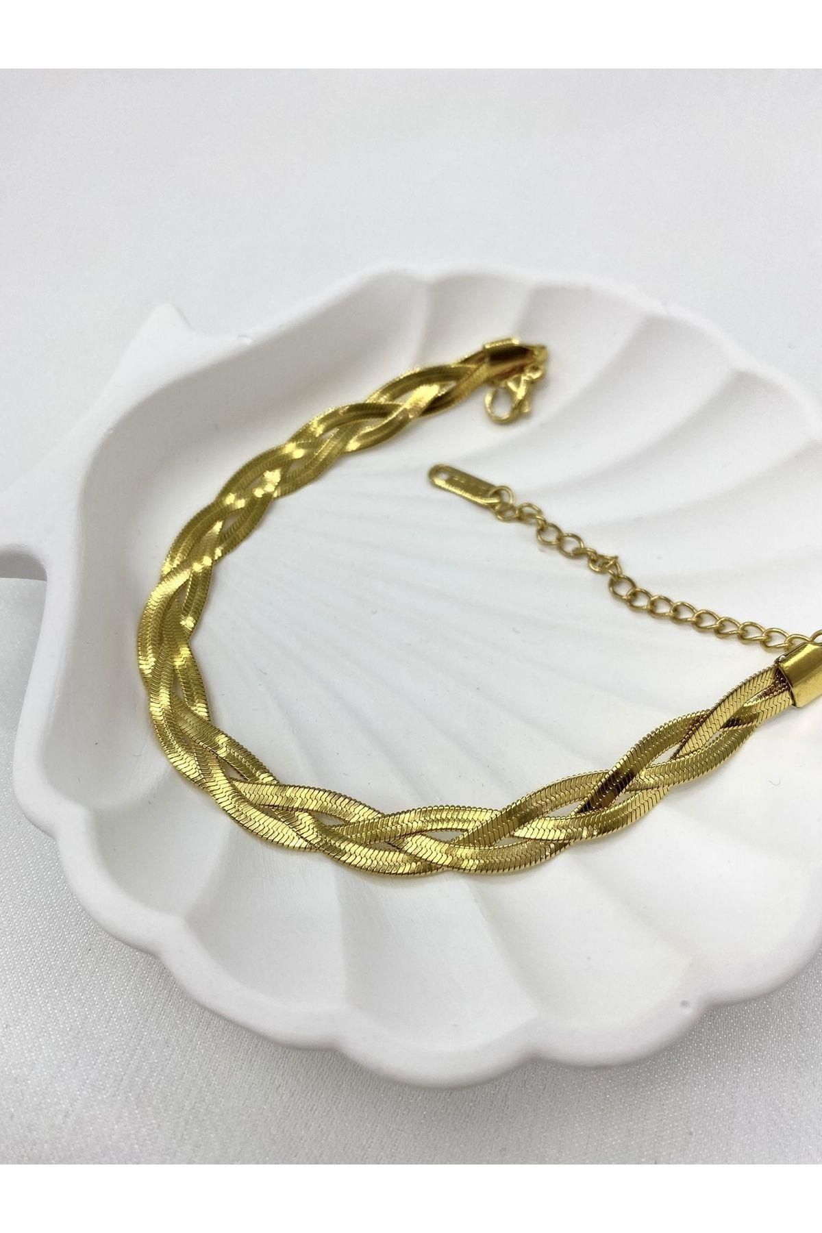 Üçlü Gold İtalyan Sarmal Çelik Bileklik